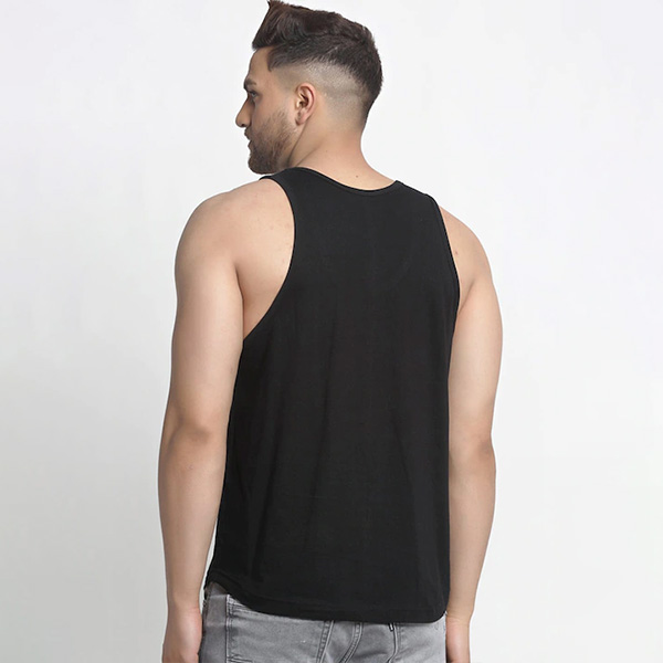 Black and white printed drop cut gym vest, has a scoop-neck, sleeveless Read more