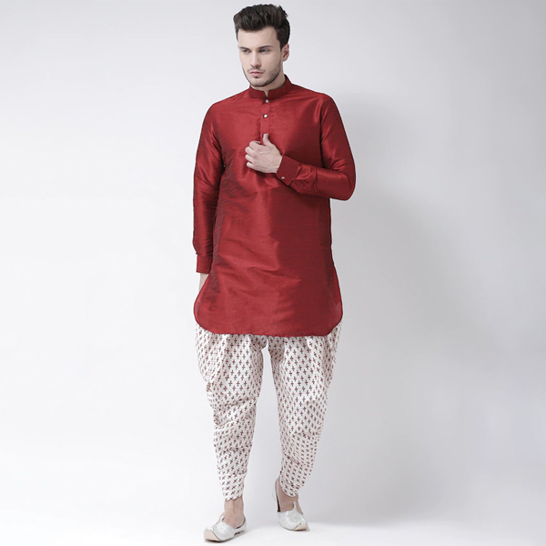 Off-white and red printed mid-rise dhoti with gathered and pleated detail, has an elasticated waistband Read more