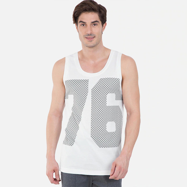 White and grey printed knitted gym vest, has a round neck, sleeveless Read more
