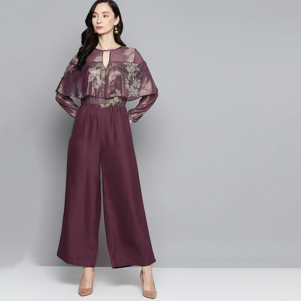 Purple & Beige Printed Basic Jumpsuit