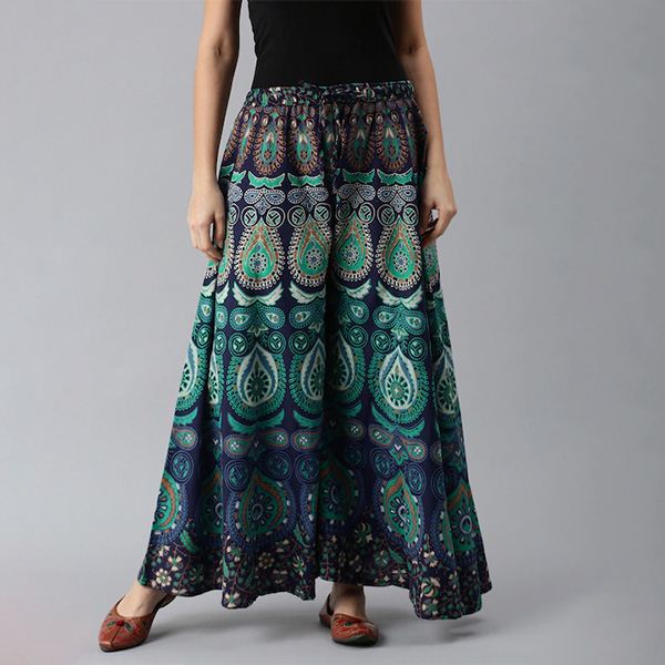 Green and navy blue kniUCT DETAILS tted palazzos Ethnic motifs print Opaque Read more