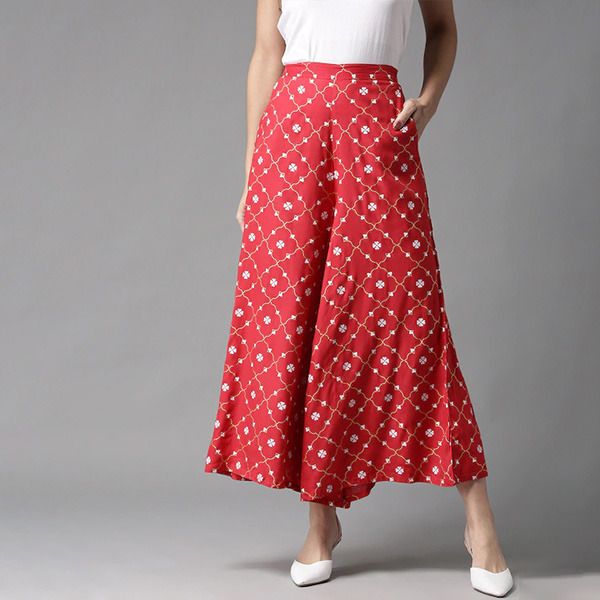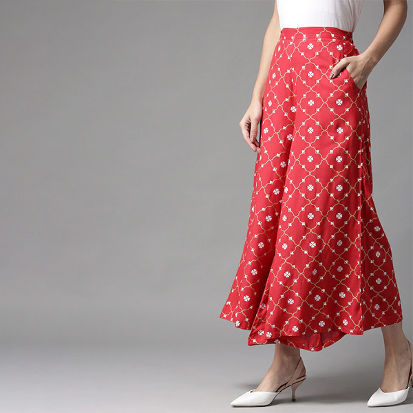 printed woven wide leg fit palazzos, opaque, two pockets, concealed zip closure